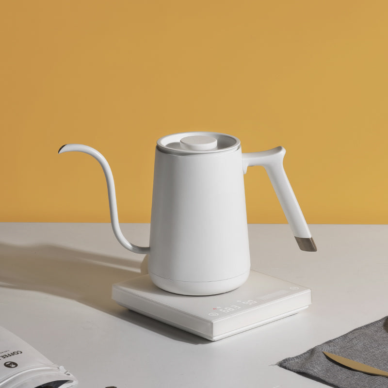 Chiếc ấm điện có cài đặt kiểm soát nhiệt độ, vòi uốn mềm đặc biệt phù hợp với người sử dụng cho phương pháp pha cà phê pour over. Ấm điện Timemore Fish Smart được thiết kế với 2 màu sắc đen và trắng.
